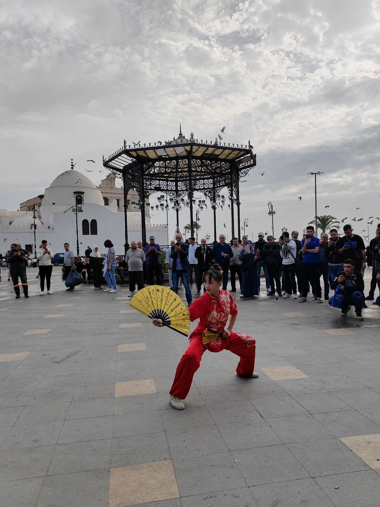 在阿尔及尔歌剧院的舞台上,成体学子们身手矫健,无论是拳法的刚劲有力,还是双扇的飘逸灵动,都让国外友人领略到了中华武术的独特魅力。在埃及开罗歌剧院的演出中,中华武术与埃及传统文化的融合表演,更是成为了晚会的一大亮点,两国武术演员同台献技,共话友谊,展现了跨文化的和谐共生。