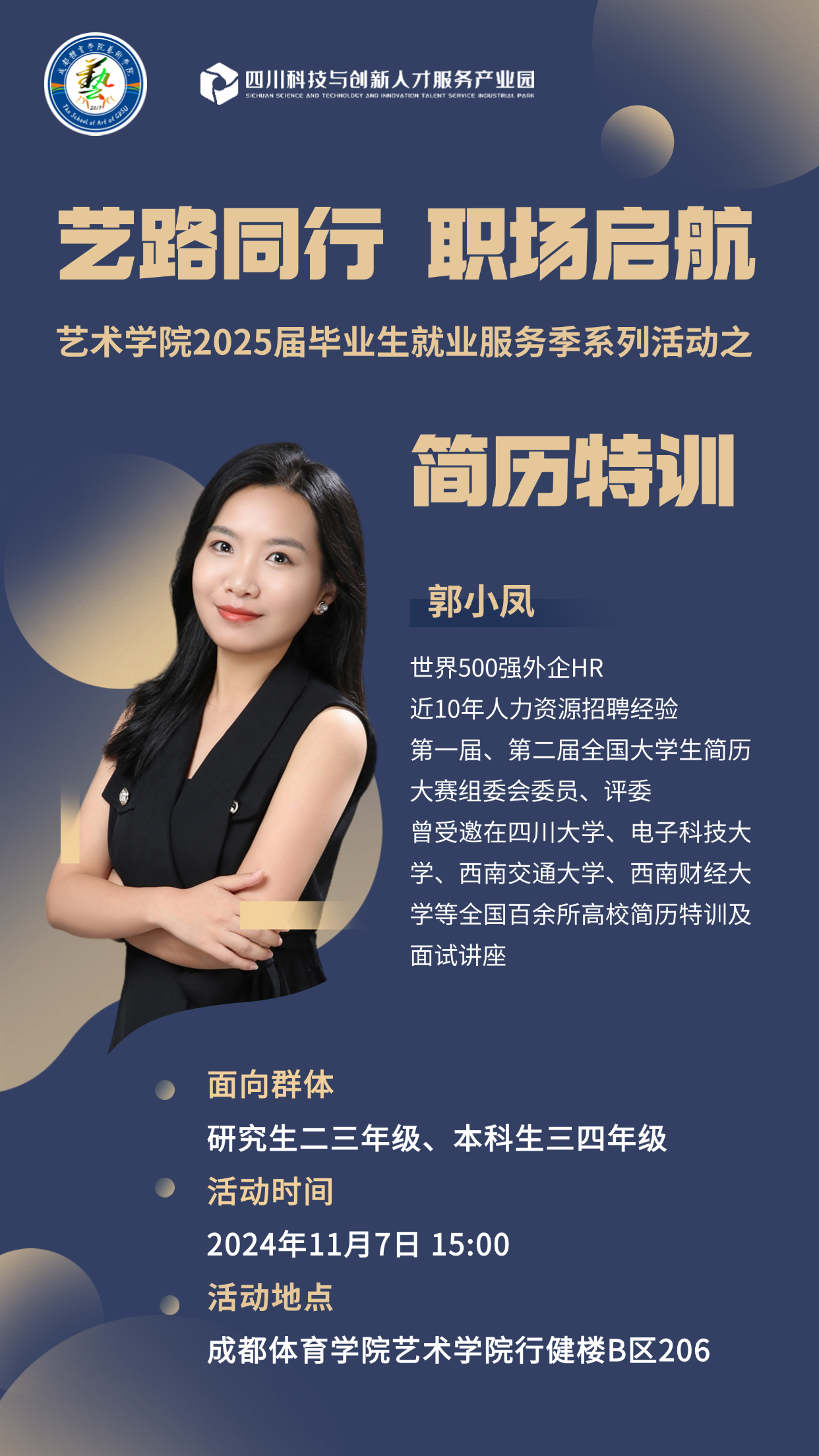 为切实做好毕业生就业服务工作,为即将踏入职场的2025届毕业生们提升就业竞争力,艺术学院于11月7日正式启动“艺路同行 职场启航”就业服务季系列活动,首场活动“简历特训”在行健楼206成功举行,现场座无虚席。