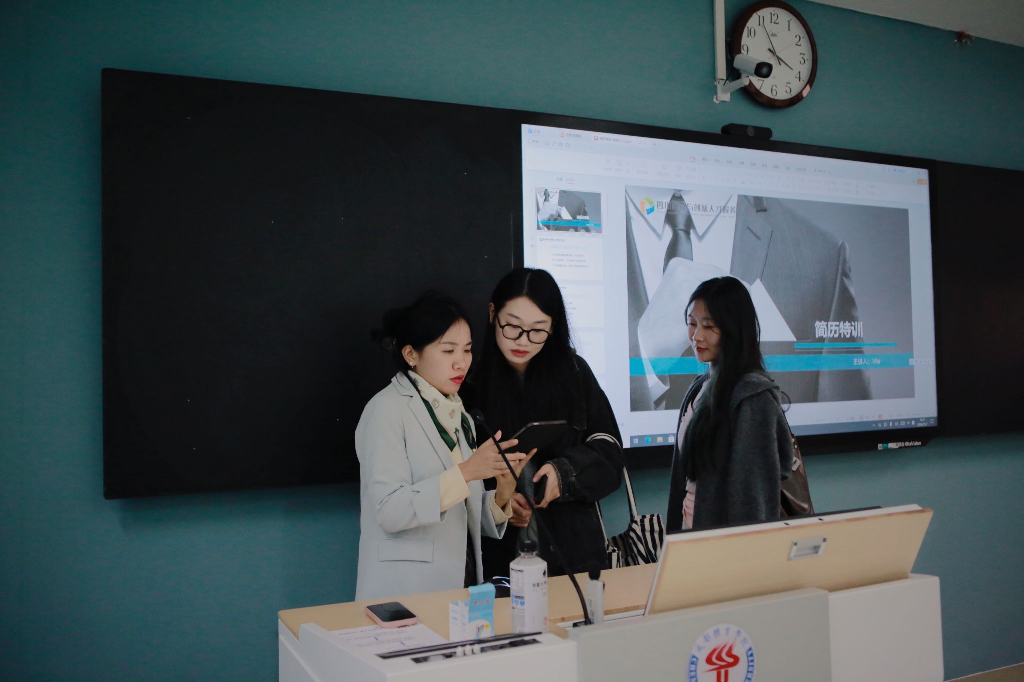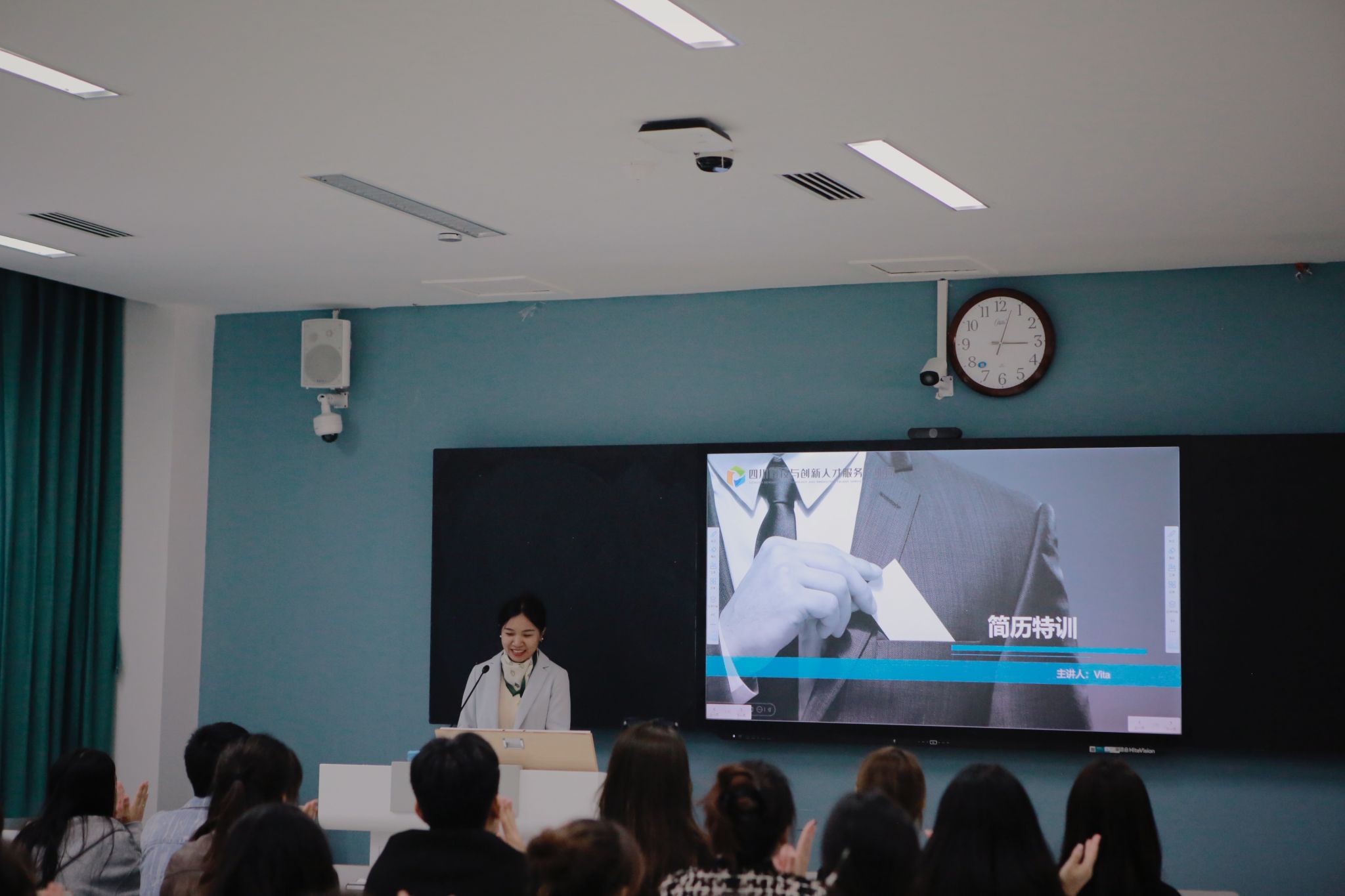 此次活动与四川省科技与创新人才服务产业园合作,邀请到了有着近十年人力资源招聘经验的世界500强外企HR郭小凤老师担任讲师,从简历内容设计、排版美观性、技能和经验展示等多个方面展开详细讲解。郭老师不仅传授了“简历黄金法则”,还结合具体案例展示了成功的简历模板,干货满满,毕业生们纷纷表示实操性强,收获颇丰。