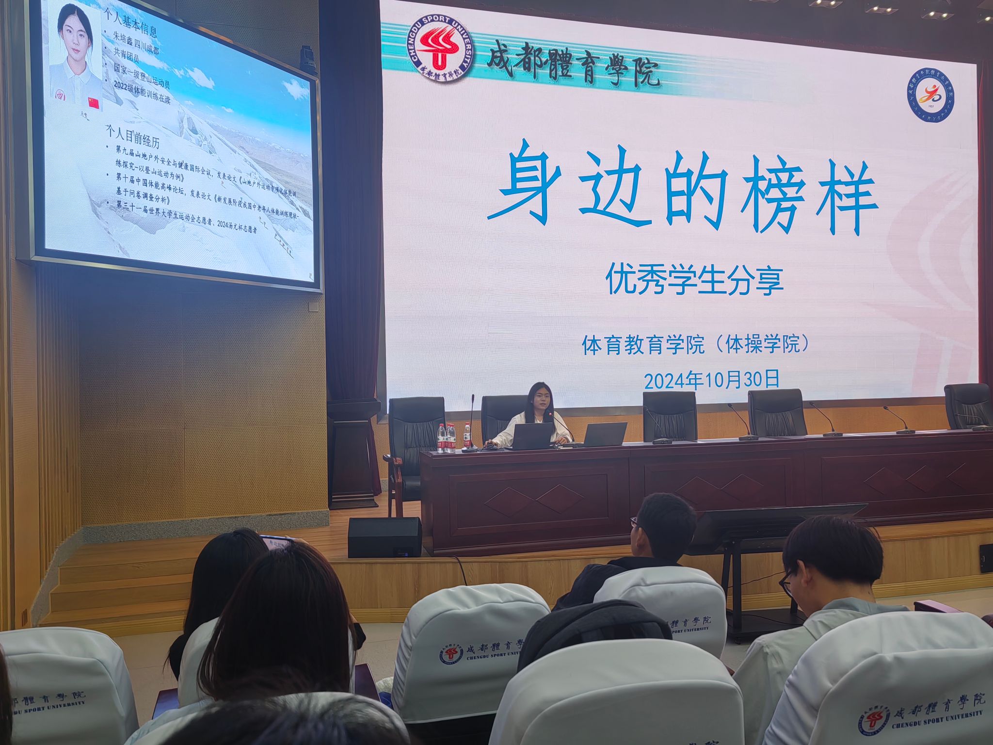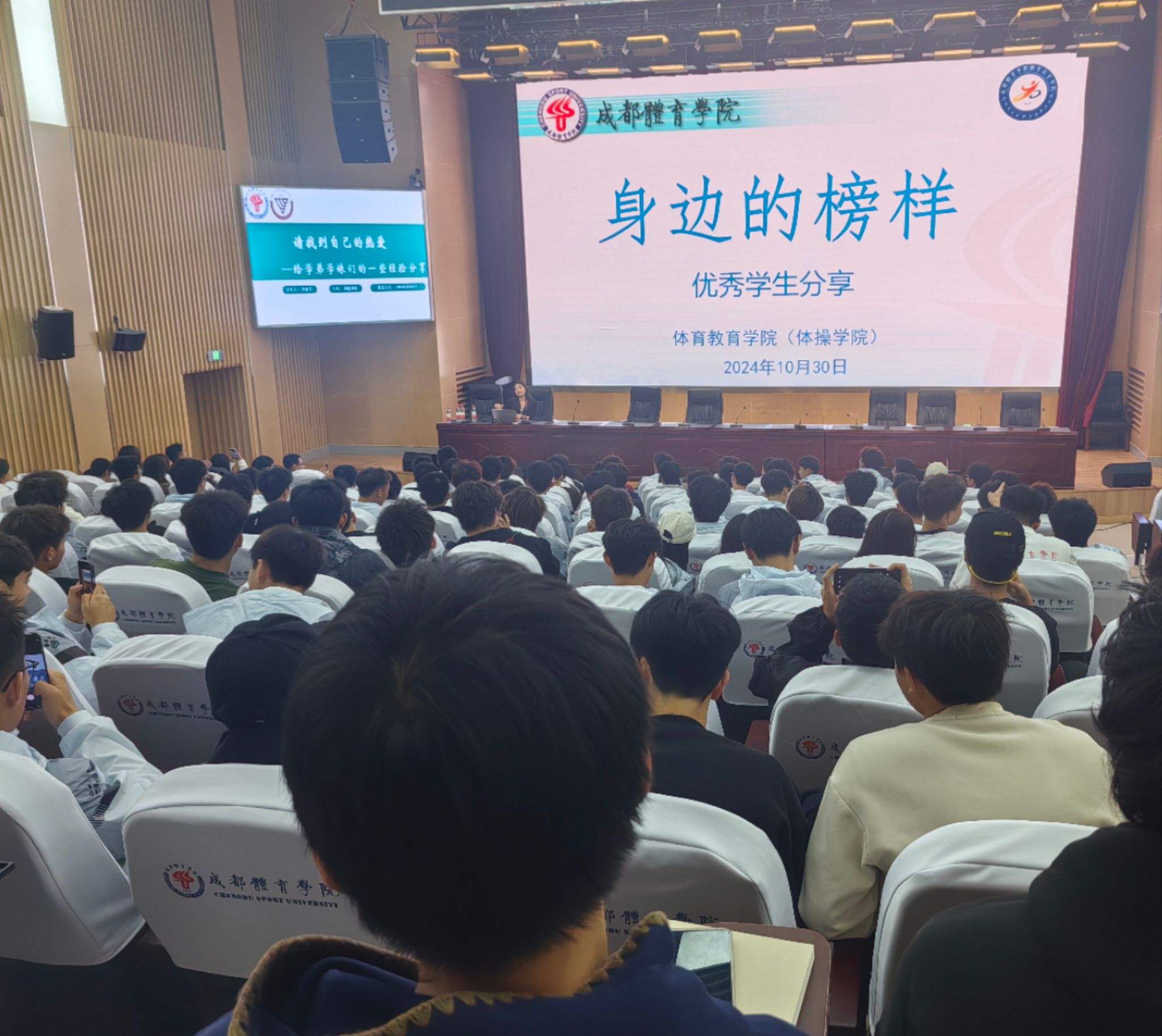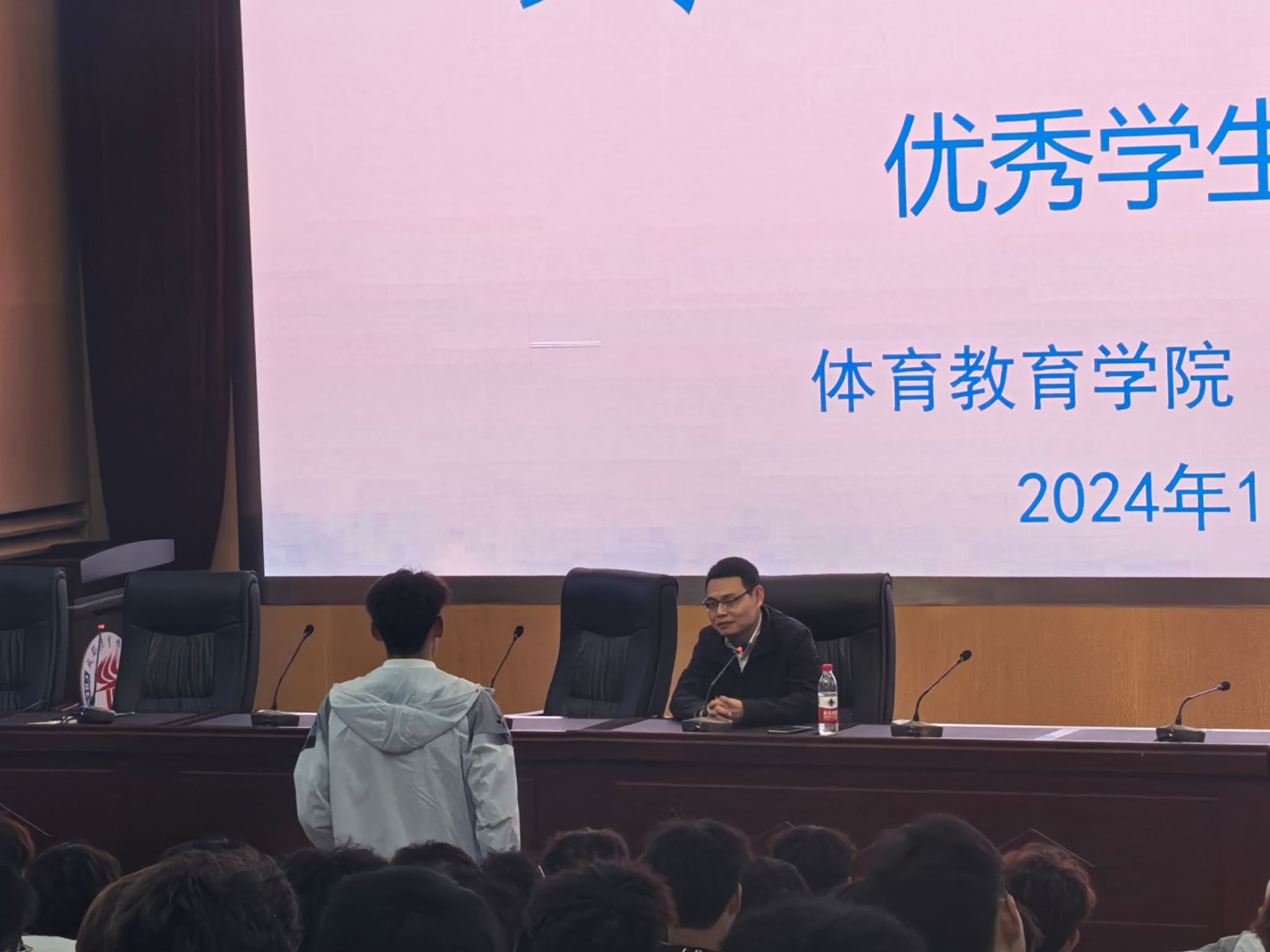 为发挥榜样的示范引领作用,教育引导本科新生做好学业规划,激励学生自立自强、奋发进取、立志成才。10月30日晚,体育教育学院本科新生入学教育——“身边的榜样”优秀学生分享会在学术报告厅举行。学院党委副书记杨彪、新生辅导员、2024级本科200余名新生代表参加。会议由学管办副主任杨青卿主持。