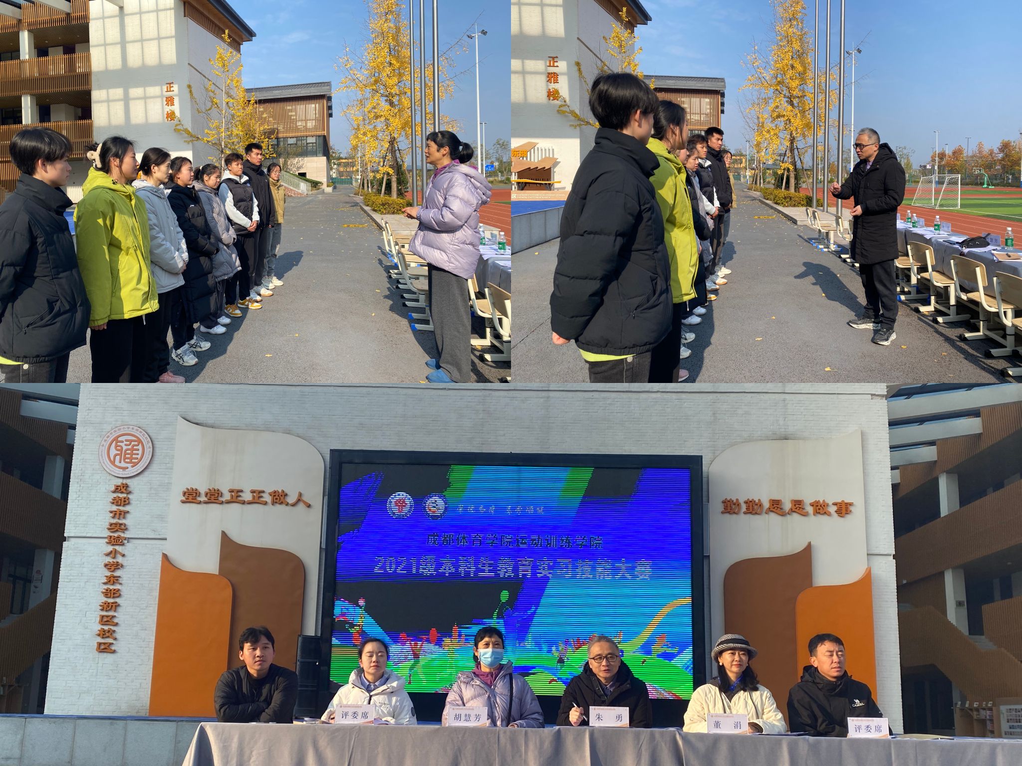 为进一步提高运动训练学院实习学生的专业技能,促进高质量就业,运动训练学院于12月11日上午在成都市实验小学东部新区校区举行2021级本科生实习技能大赛,成都体育学院运动训练学院党委副书记朱勇、成都体育学院胡惠芳副教授、成都市教科院附中初中部副校长董涓、成都市实验小学体育教研组长何帆等作为评委参加活动。此次特别邀请成都市教科院附中(成都高级中学)作为用人单位参加我院实习技能大赛,进一步加强与用人单位的合作。