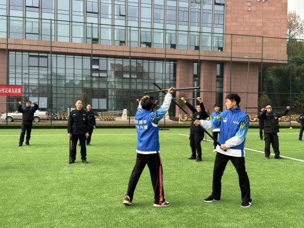 为进一步提升警民联防能力与默契,传播武术传统文化,促进和谐社会的建设。12月19日,一场别开生面的警民联动活动在武术学院武术馆前的广阔足球场上隆重举行。本次活动由武术学院与三岔派出所精心策划并联合主办,旨在通过资源共享、技能互学,共同提升安全防范能力和社区和谐水平。